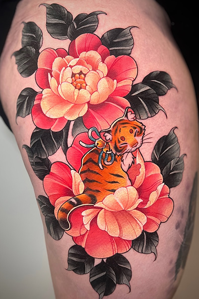 Sam taitaa neotraditional tyylin, jossa korostuvat floora ja fauna. Teemat kietoutuvat yhteen hienostuneen viivan ja luonnonläheisten värien yhdistelmällä.